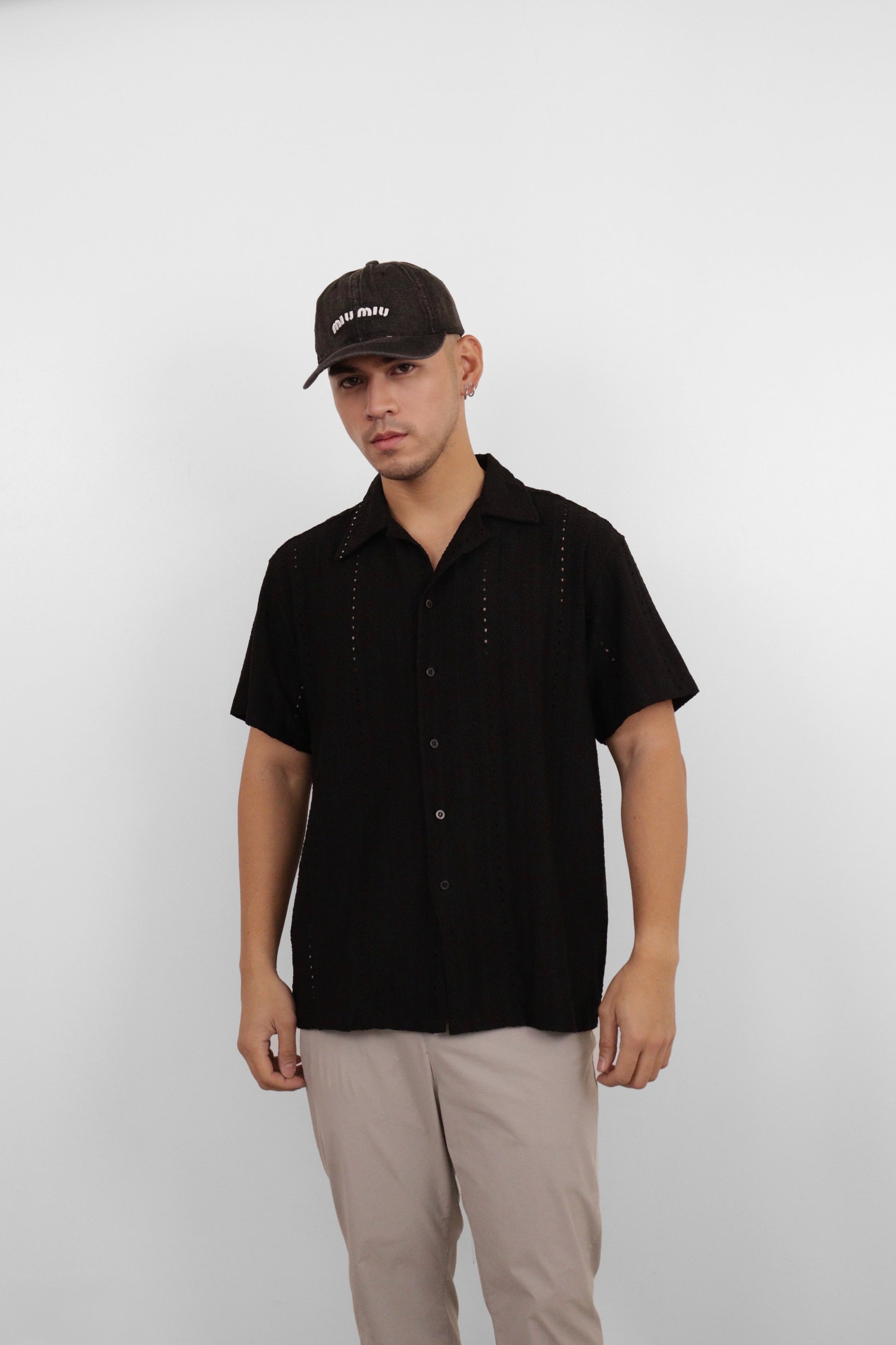 Timeless and versatile, the Black Textured Camp Shirt brings understated elegance with its tonal vertical detailing. A sharp wardrobe essential that transitions seamlessly from day to night.