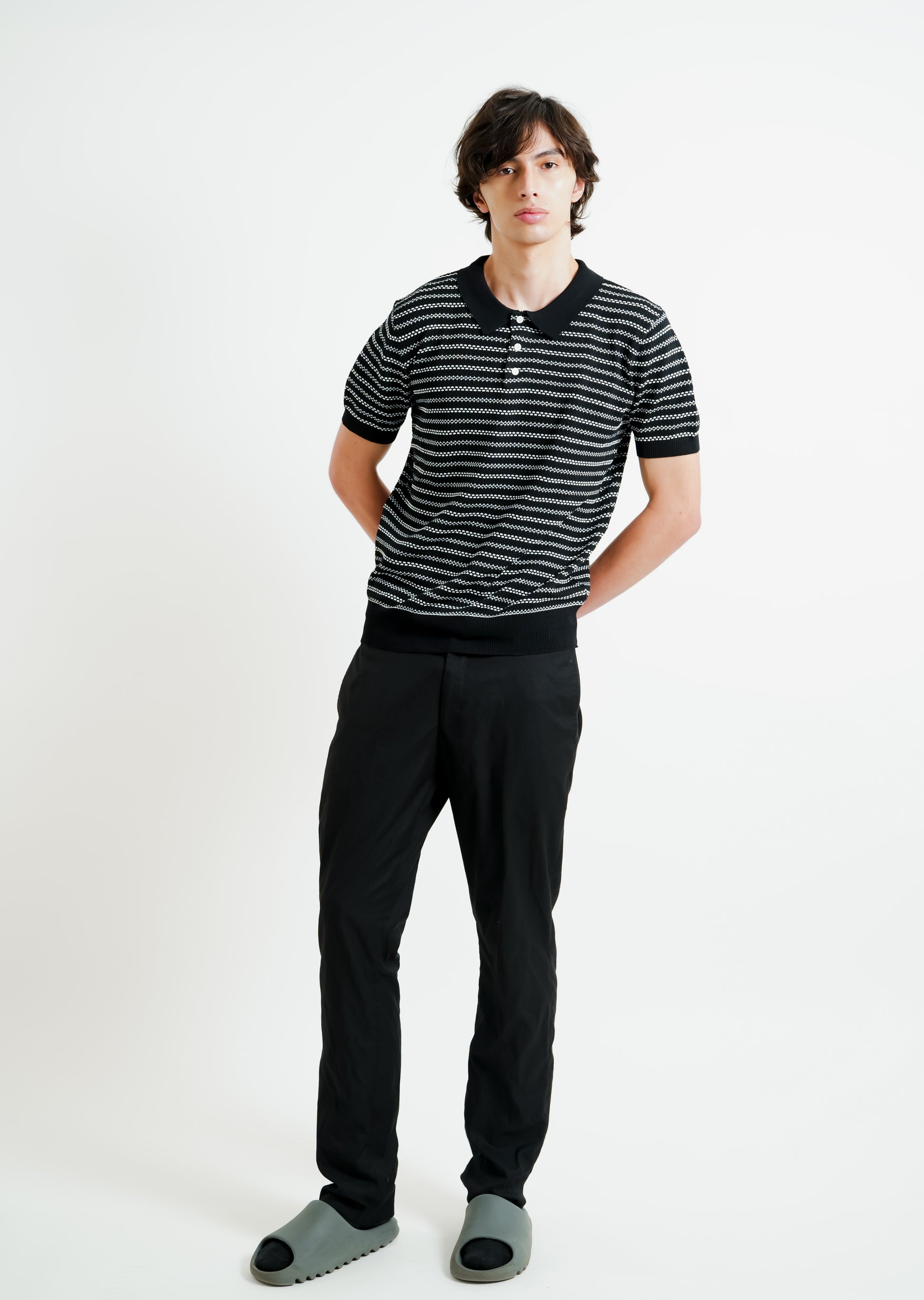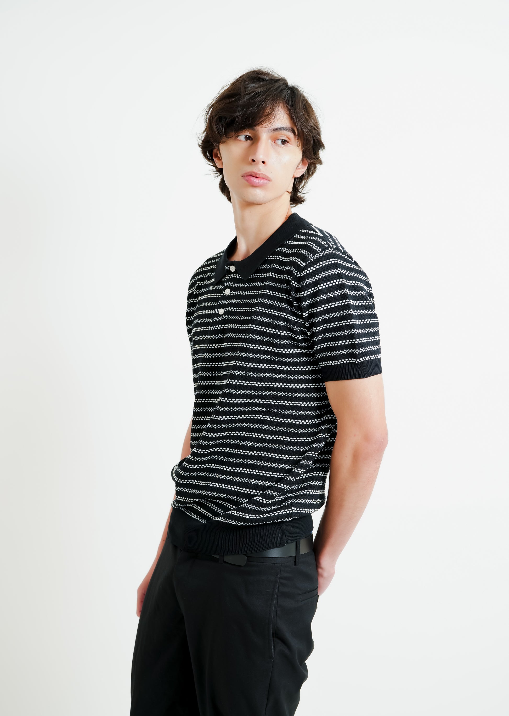 The Black & White Micro Stripe Polo is sleek, versatile, and easy to style. Its fine knit stripes add texture and depth, while the monochrome palette keeps it sharp and minimal. A go-to staple for any modern wardrobe.