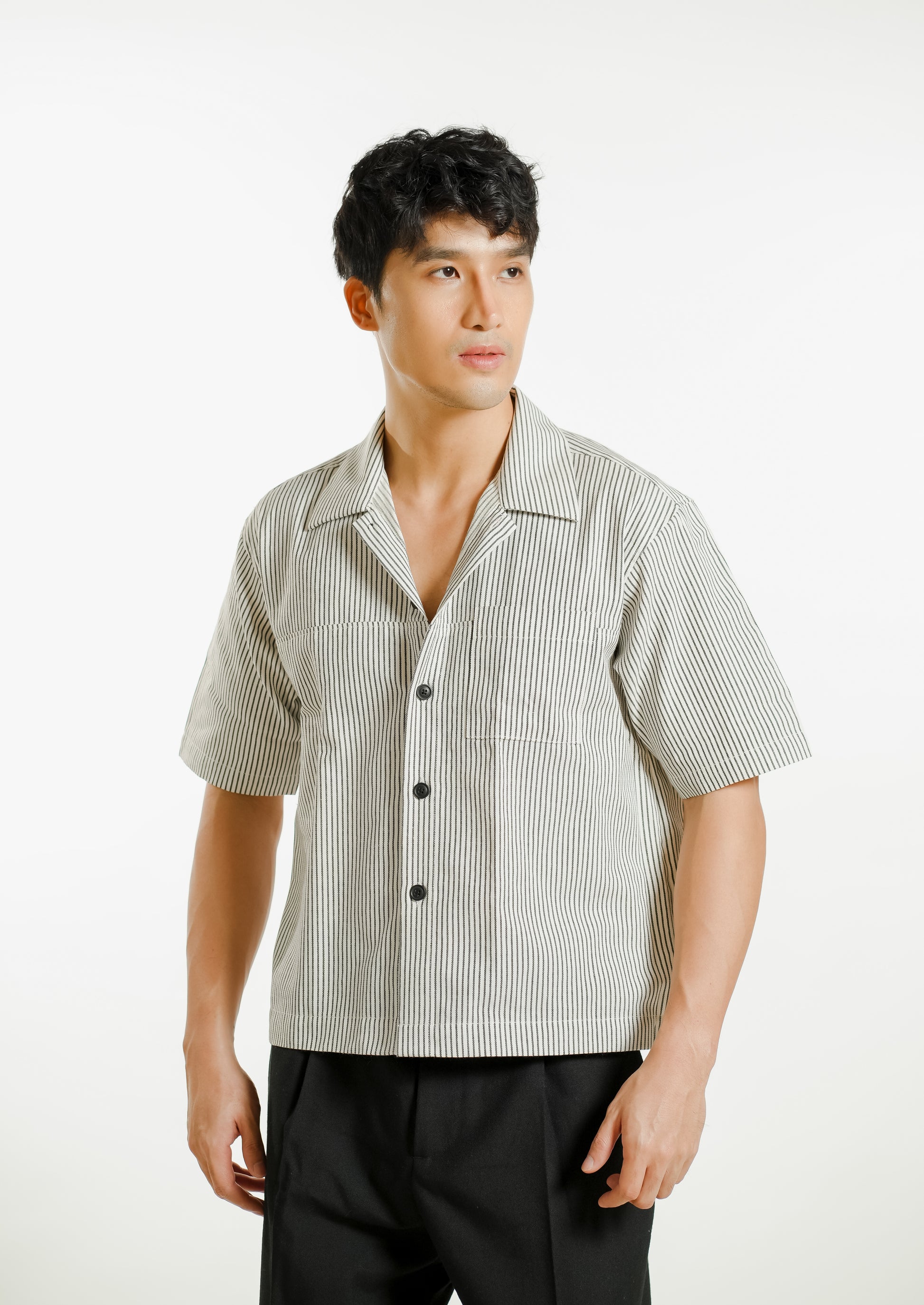 Pair with black or cream trousers. Leave the collar open for an effortless, warm weather look.