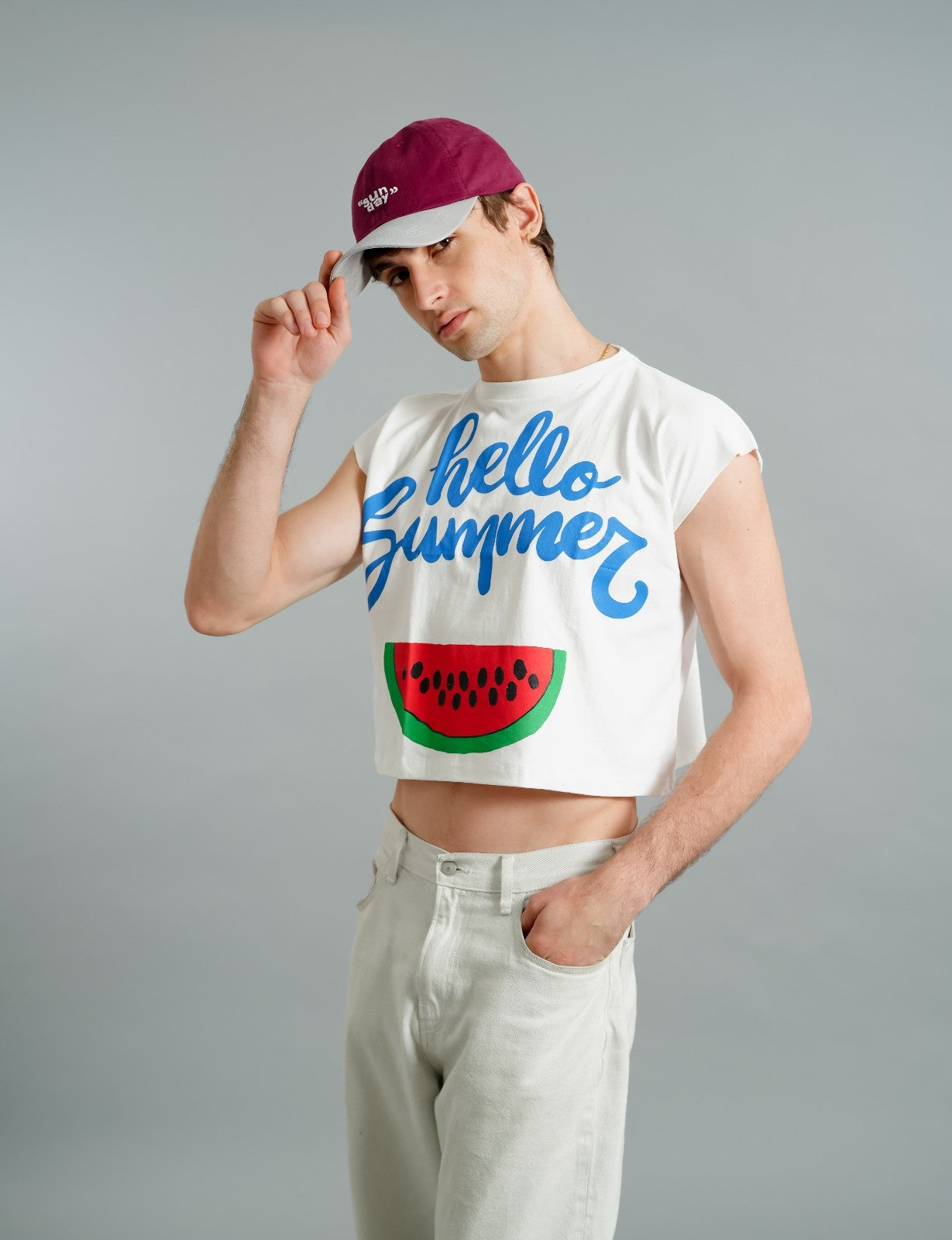 Celebrate the season with the Hello Summer Watermelon Tee. Featuring bold typography and a vibrant fruit graphic, this cropped tee is the perfect piece for warm-weather styling.